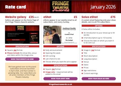 Fringe Theatre Awards Limited (the “FTA”) has been created to recognise outstanding achievements in live Fringe Theatre productions.